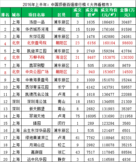 1,2016年上半年是中国房地产历史上第一个顶豪年,一二线城市豪宅频繁出现。一线城市动不动发飙刷新20万+一平米,而二线城市也在纷纷想突破10万+
