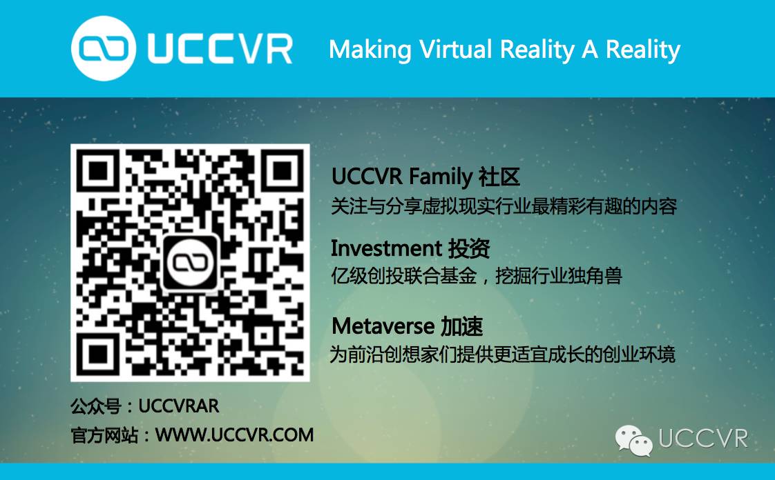 推荐阅读:BUY+购物要来了丨西部世界VR体验丨武汉沙龙报名中丨体验店盘点丨神十一虚拟技术丨VIVE跨界挑战赛丨PS VR游戏盘点丨1027武汉沙龙首航开启丨你所不知道的太空驾驶距离丨中国VR行业市场观察报告丨OCULUS 谈VR七大技术方向丨HELLO MARS丨UCCVR 创想家南京站沙龙丨十大经典游戏进军VR丨UCCVR 领投POLYARC丨VISENSE新款大作丨MAGIC LEAP技术起底丨VR/AR头显品牌报告丨创想家符国新丨最强布料模拟软件MD丨VR投资产业跟踪报告丨7款知名VR测评丨虚拟现实定格画面丨STEAM数据丨VR创业者心路丨UCCVR TANGO丨VR芯片丨VR 梵高丨中国VR行业研究丨最常见的7种AR丨将虚拟变成现实 丨MIRRORKEY 丨2016年VR行业报告丨你有马赛克,我有无人机丨VR 品牌案例丨VR开发引擎丨一镜到底丨UCCVR-北京站丨UCCVR-成都站丨UCCVR -广州站