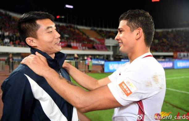 中超第三轮上海上港与广州恒大的比赛结束后,上港前锋埃尔克森来到场边与老大哥郑智寒暄叙旧。昨日,埃神在自己的社交平台上传了与郑智的合影,并盛赞了昔日自己的队长。