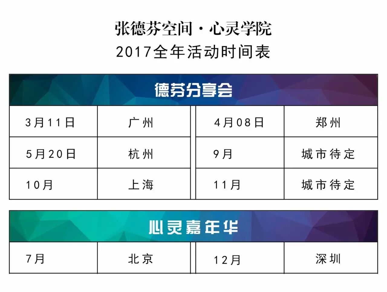 德芬六城分享会+两场心灵嘉年华