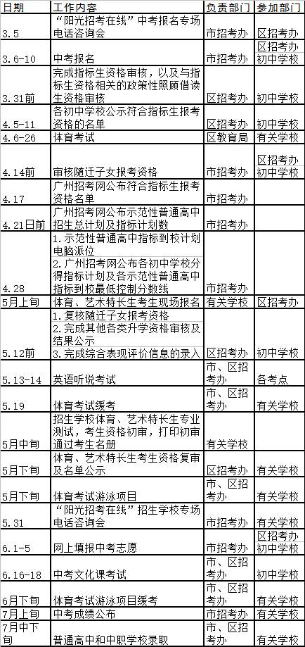 2017年广州市高中阶段学校招生考试部分工作日程安排