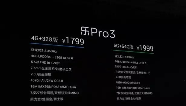 乐Pro 3发布 1799骁龙821 乐视“玩大了”