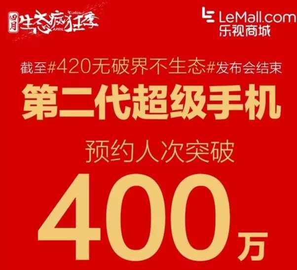 根据此前的乐视2代超级手机预售量来看,仅在发布会结束的三个多小时里,预约量就已经突破了400万!根据乐Pro3的情况来看,很有可能会出现一发布被一抢而空的情况,所以笔者建议大家可以尝试在天猫这样的大流量平台预购。