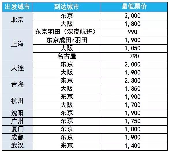 | 出发地 | 北京、上海、广州、大连、成都、杭州、沈阳、青岛、厦门、武汉 |