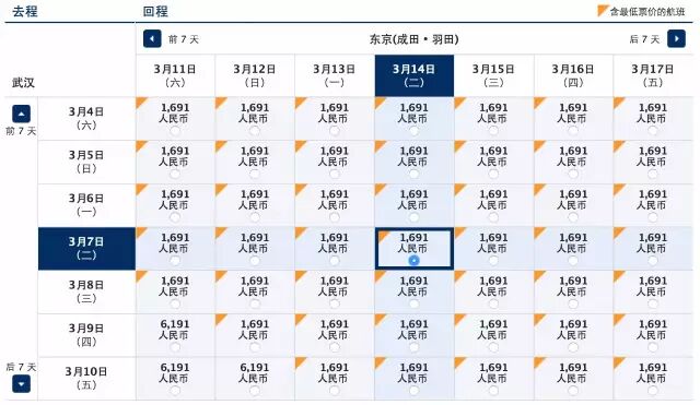 >>>武汉-东京,樱花季早期,往返税后1691元