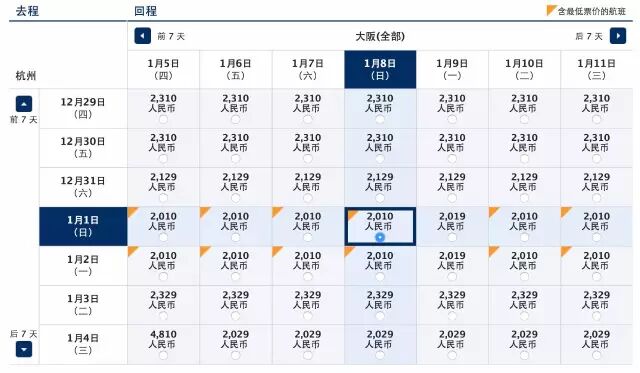 >>>杭州-大阪,元旦假期,往返税后2010元
