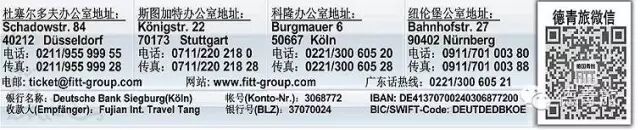 提醒:德青旅的微信订阅号主要提供机票,大巴游等最新特价信息以及出行资讯等,具体询问机票,签证等事宜烦请添加德国青旅微信号:fittde