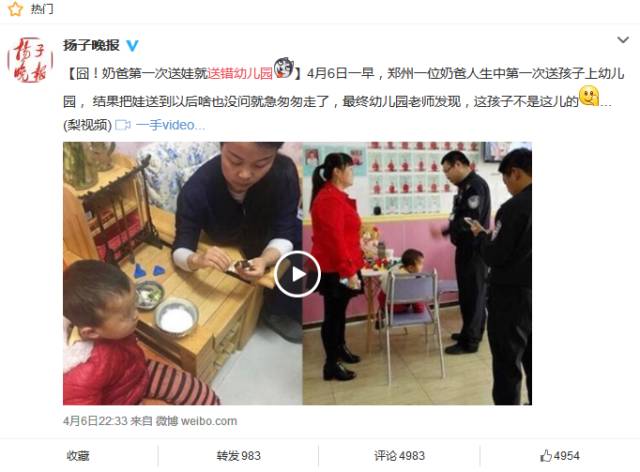 前段时间一位爸爸将自家儿子送错幼儿园,