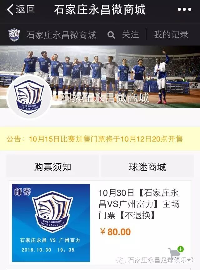 10月30日【石家庄永昌VS广州富力】门票销售方案