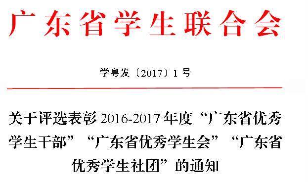 关于评选表彰2016-2017年度“广东省优秀 学生干部”“广东省优秀学生会”“广东省 优秀学生社团”的通知