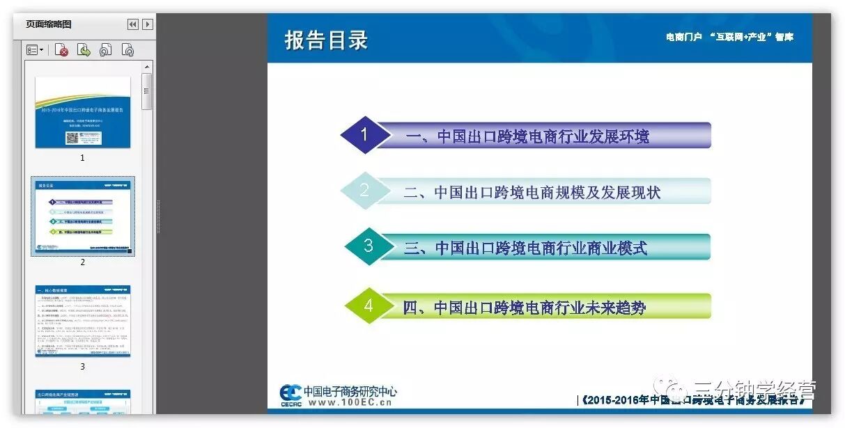 2.《2015-2016年中国出口跨境电子商务发展报告》(全PDF版,30页,中国电子商务研究中心出品);