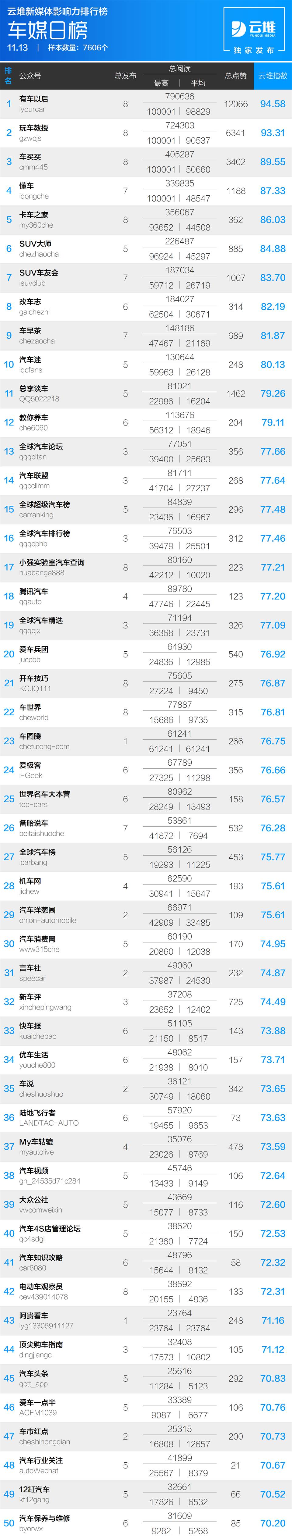 查询其他行业排名,请点击左下角“阅读原文”或者关注云堆新媒微信号获取更多信息。