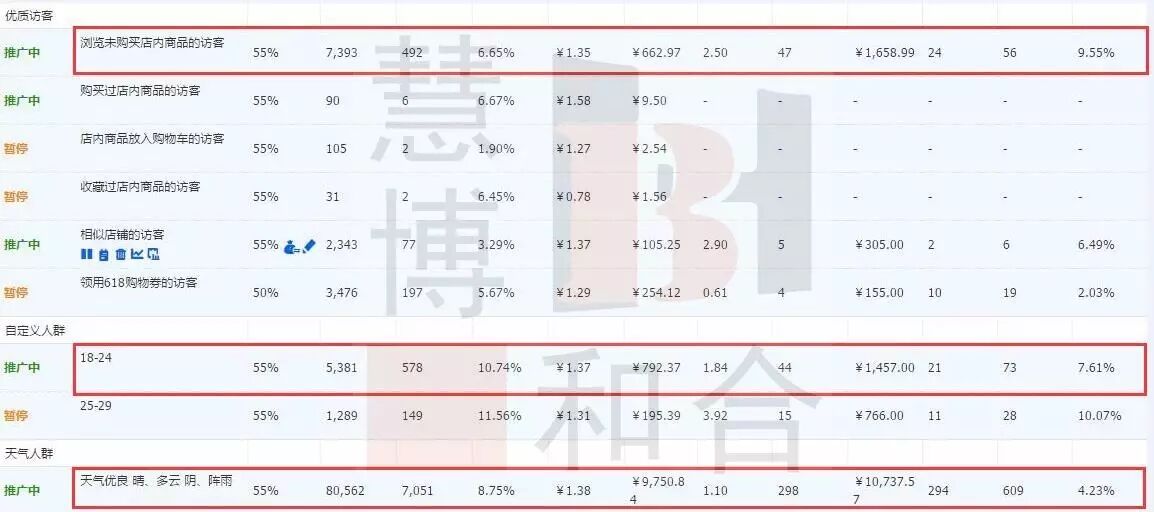 人群圈定:浏览同行店铺,圈定次于我家的店铺、优于我家的店铺的访客人群分计划先后进行投放。