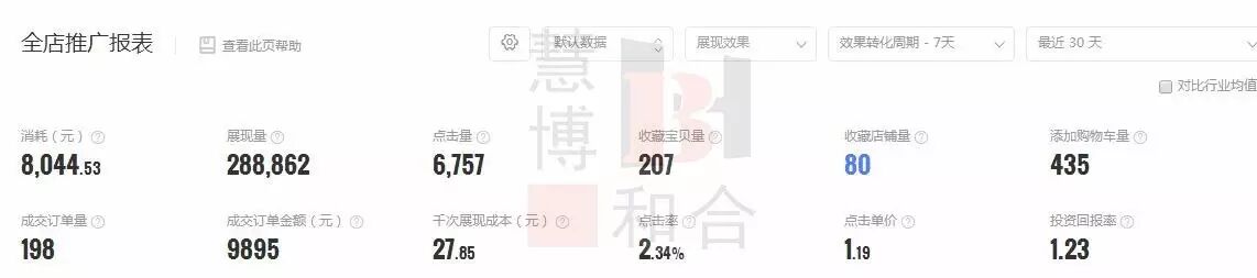 经过上述方式调整直通车后的数据如下图,点击率达到4.32%,投产达到2.78,转化率达到3.79%。