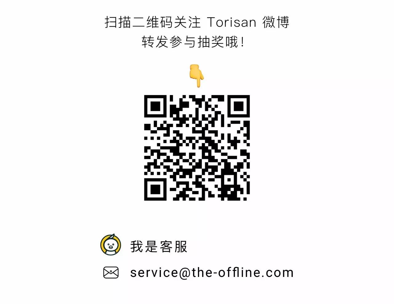 规则很简单,关注并转发 @托力桑_Torisan 的微博,我将在本周日下午 8 : 00 准时抽奖!