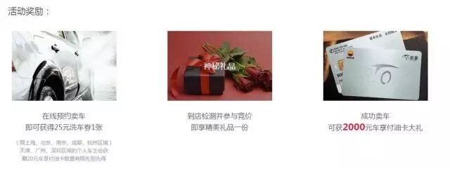 上海、北京、天津、南京、成都、杭州、广州、深圳的车主们注意了,“车享3.28”旧车高价卖,新车低价买活动已经开始了!上述活动地区的车主们,只要你的旧车,车辆无抵押记录,且一年内无过户记录(非直系亲属过户),你就有资格参加本次的活动的报名,牌照不限。活动时间:2016.03.28——2016.04.24登陆车享二手车手机端或PC端活动页面登记预约卖车就有礼品送。上海、北京、南京、成都、杭州区域车主可获得25元洗车券1张,天津、广州、深圳车主可获得20元面值车享付油卡1张,数量有限先到先得。成功卖出将可获得2000元车享付油卡,在油价这么贵的年代,也够您自驾玩一圈了。预约成功后,会有车享专业人员为您进行后续的一条龙服务,你只要拿着手机轻松的等待收账就可以。(到店检测还有车享为您准备的精美礼品可以拿哦!)![]()