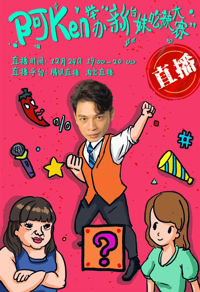台湾名嘴阿ken要带着两个台妹直播吃辣比赛了