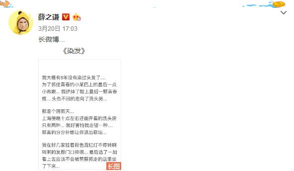 可为啥薛之谦还特意写了一篇名为《染发》的小作文?