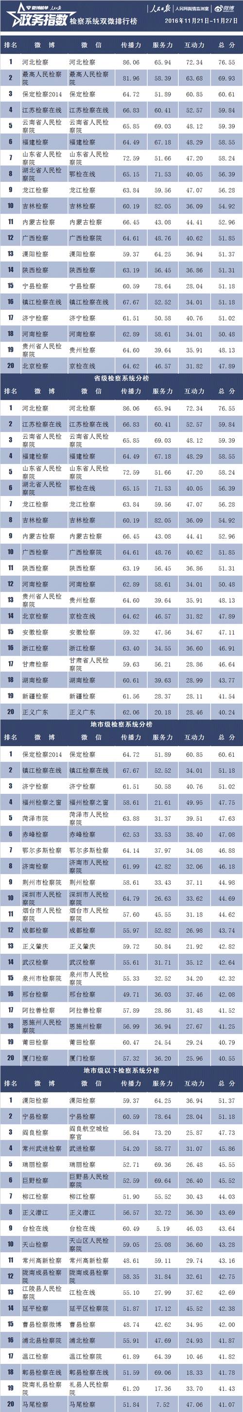 【政法】全国政法系统双微排行榜(11月21日-11月27日)