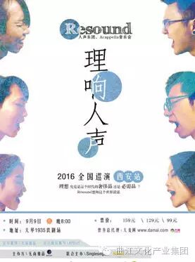 "人"本身就是世界上最好、最精致的发声体,人声是世界上最美丽的声音,人体是最美妙的发声体,人的声音胜过一切乐器。为了将这种最美的声音传播给更多人,全国阿卡贝拉大赛亚军、即将代表中国大陆出战台湾并与韩日港台的顶级无伴奏人声合唱乐团一较高下的Resound理想人声乐团即将踏上全国巡演的征程,他们想要自己温暖的声音,去和这个冰冷的世界展开一场严肃的对话。