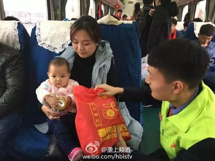 1487名湖北老乡踏上了回家路。新年的味道,也就从次开始。列车上,主办方为老乡们新春大礼包。红围巾、中国结、窗花、红色大礼包,乡亲们脸上洋溢着回家的喜悦。