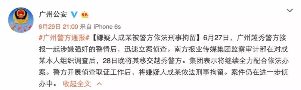 6月28日下午,一位网友在多个社交平台爆料称:南方日报记者成某6月27日下午一名女实习生。