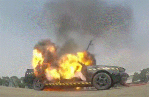 烟头带着红色的火星从车窗飞走,飘到车底,与漏出的汽油碰在一起。轰!