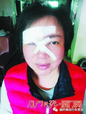 据《厦门日报》记者采访,叶女士整个鼻梁骨和右眼眶都被纱布紧紧包裹着,瘀青的右眼,肿胀得完全睁不开。在与记者见面时,都是半眯着左眼,摸着身旁的建筑物,慢慢地挪过来。