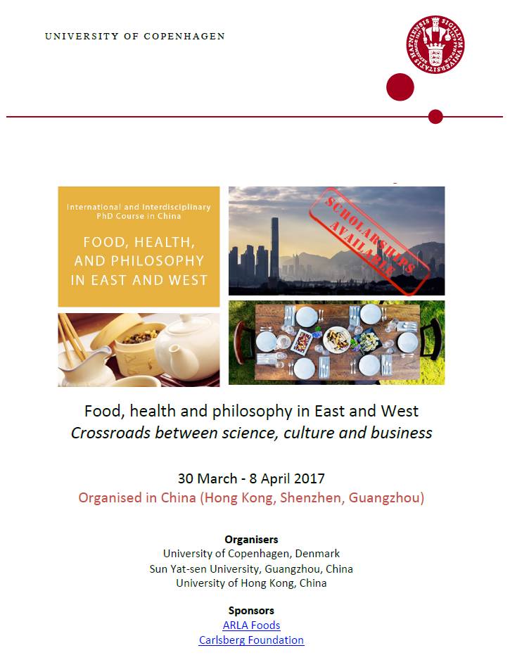 由哥本哈根大学、中山大学以及香港大学联合授课的博士课程“东西方的饮食、健康与哲学”将于2017年3月30日-4月8日在香港、深圳以及广州开课。