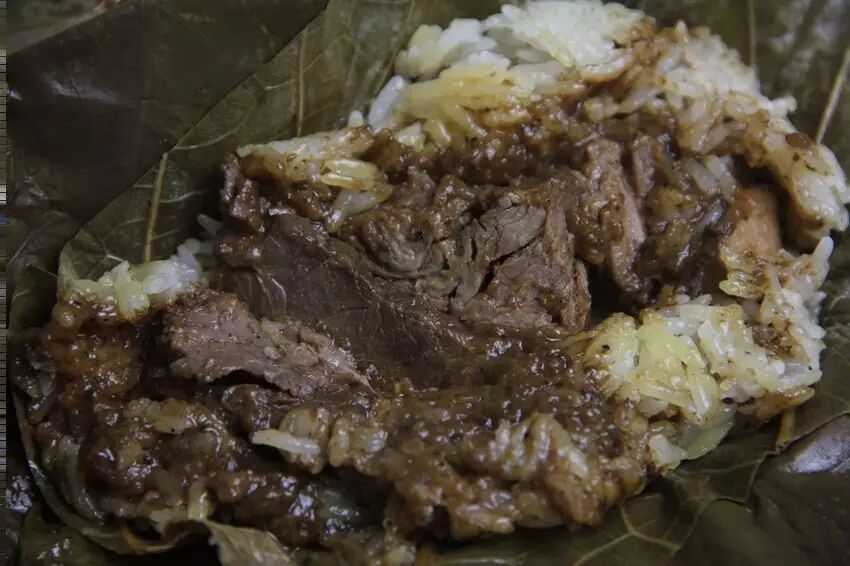 平时糯米鸡听多吃多,还真没听过糯米牛。婆婆能想到这创意,收下我的膝盖吧,里面的馅料是牛排,终于可以告别吐鸡骨的烦恼了!