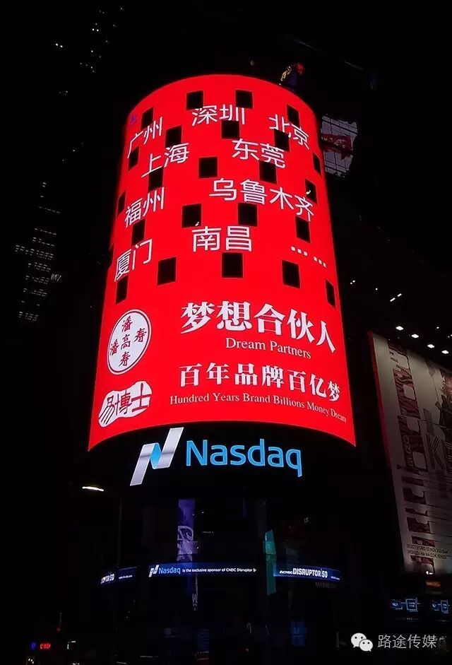 近日,潘高寿上画美国纽约时代广场纳斯达克大屏幕。