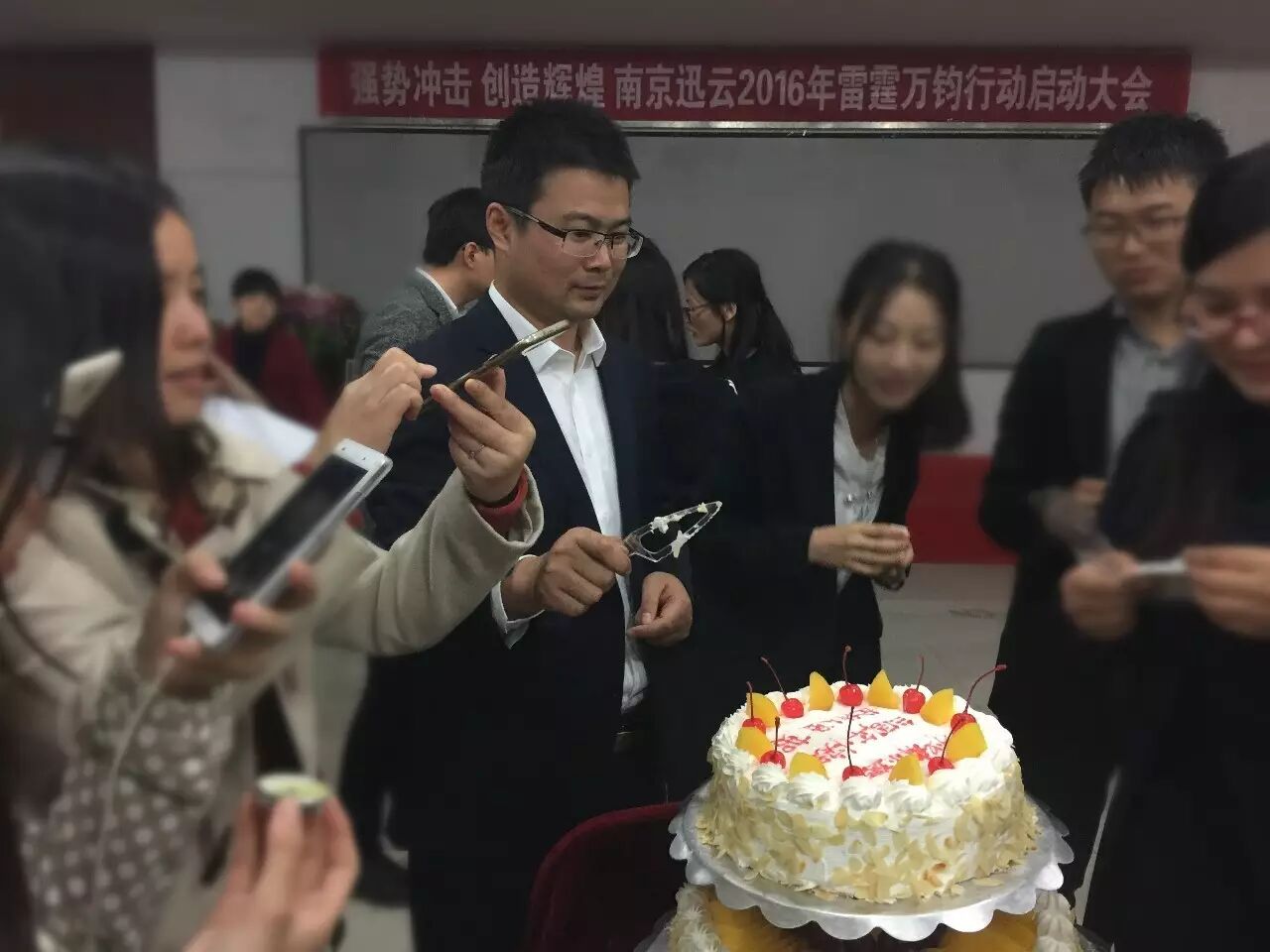 南京迅云公司总经理孙志敏与小伙伴一起为公司庆生