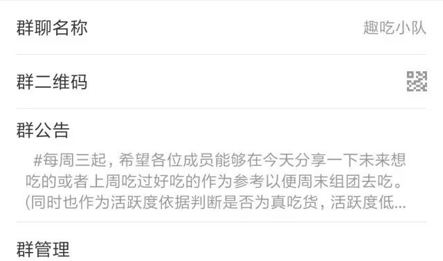 3.每周三为趣吃小队分享日,我们将通过这天群内成员想要吃或推荐的店铺及活动定夺周末及下周活动。(如多次不分享,将被判定为非活跃成员而被移出群内)