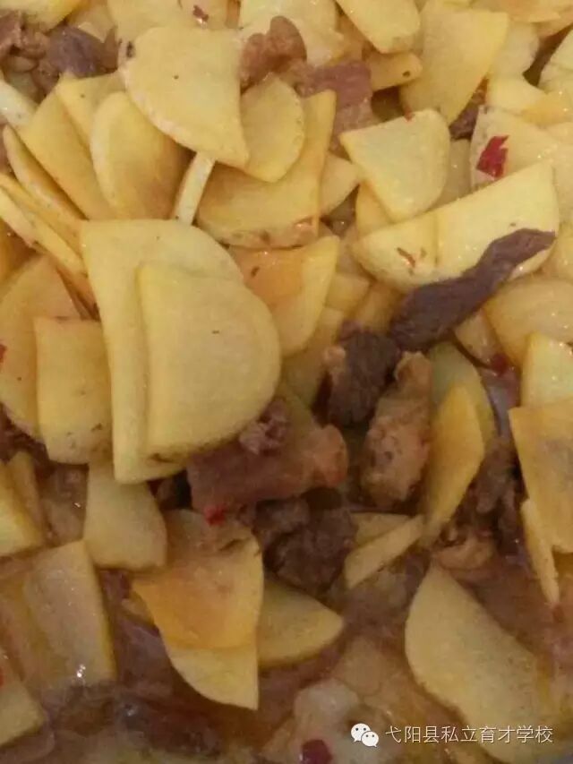 土豆含有蛋白质、B族维生素、维生素C、钙、钾等微量元素,且易于消化吸收,营养丰富。猪肉来自学校的养猪场,肉香味美