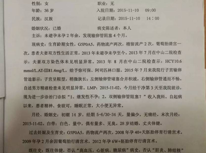 2015年11月 入院进行宫腔镜联合腹腔镜手术;