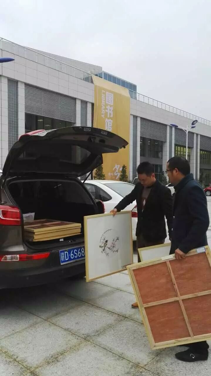 但是装车成了问题,因为他开的不是越野车,小车的尾厢中又有其它货物,怎么办?甘建华一片片将后排装满,又清走了尾厢中的部分东西,在副驾驶也放了几副作品,硬是把49件作品全装下了。忙完这一切,他累得出了一身汗,露出欣慰的笑容:真是不虚此行,满载而归啊!