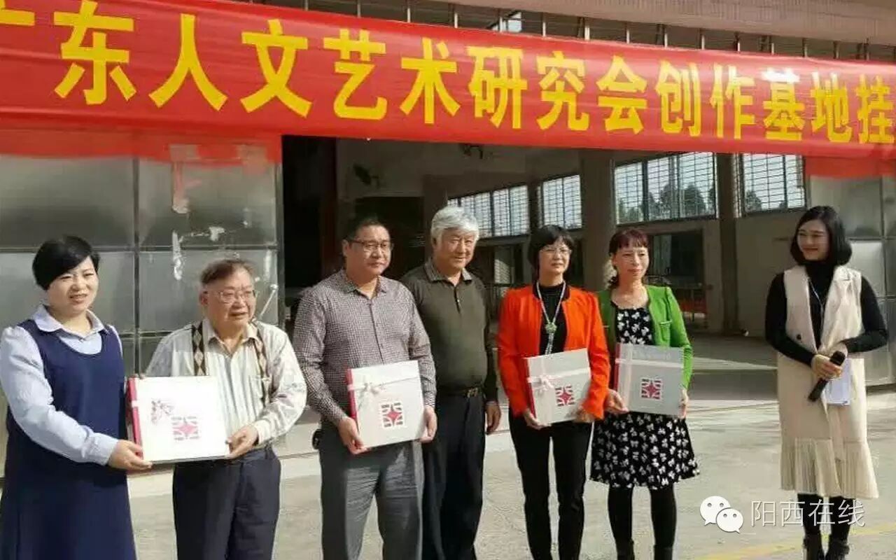 12月4日,广东人文艺术研究会创作基地在阳西县新墟镇挂牌。广东人文艺术研究会创会会长、原广东省文联主席刘斯奋,广东人文艺术研究会会长、原广州市文联主席乔平与10余位书画艺术家出席创作基地挂牌仪式,阳西县委常委、宣传部部长张英华致辞祝贺。阳西籍国家级油画家陈许发来贺文。