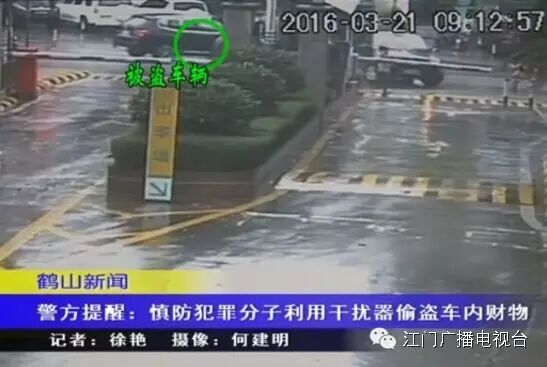 就在今年5月,鹤山市警方破获了一起利用电子干扰器盗窃车内财物的案件。监控显示,犯罪嫌疑人在车主锁车的时候,用干扰器干扰上锁,在一分钟左右的时间里,偷走了车内约3万元财物。