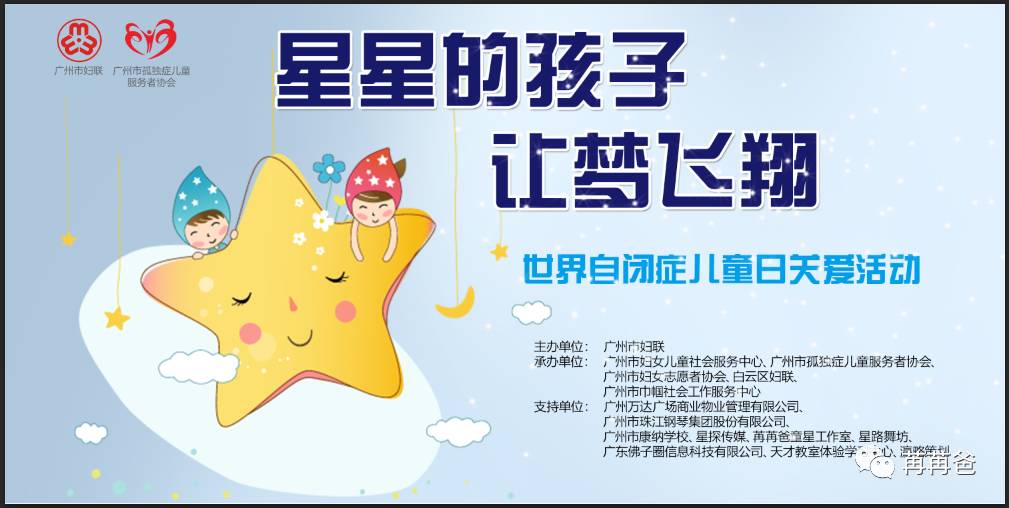 有广州市妇联主办,广州市妇女儿童社会服务中心、广州市孤独症儿童服务者协会、广州市妇女志愿者协会、白云区妇联、广州市巾帼社会工作服务中心承办的《星语星愿 让梦飞翔》关爱活动将在白云万达广场中庭举行,同时启动关爱自闭症儿童的童星公益巡演。