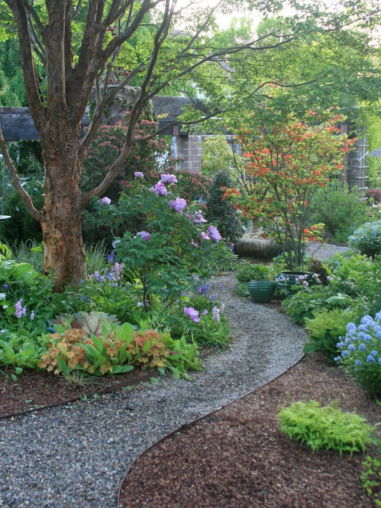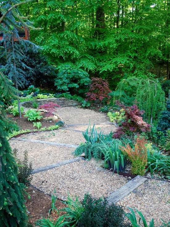 8.砾石路,弯弯曲曲的砾石路可以让一个小花园显得更大,通过较多的植物和树木的组合,花园的空间感更好。