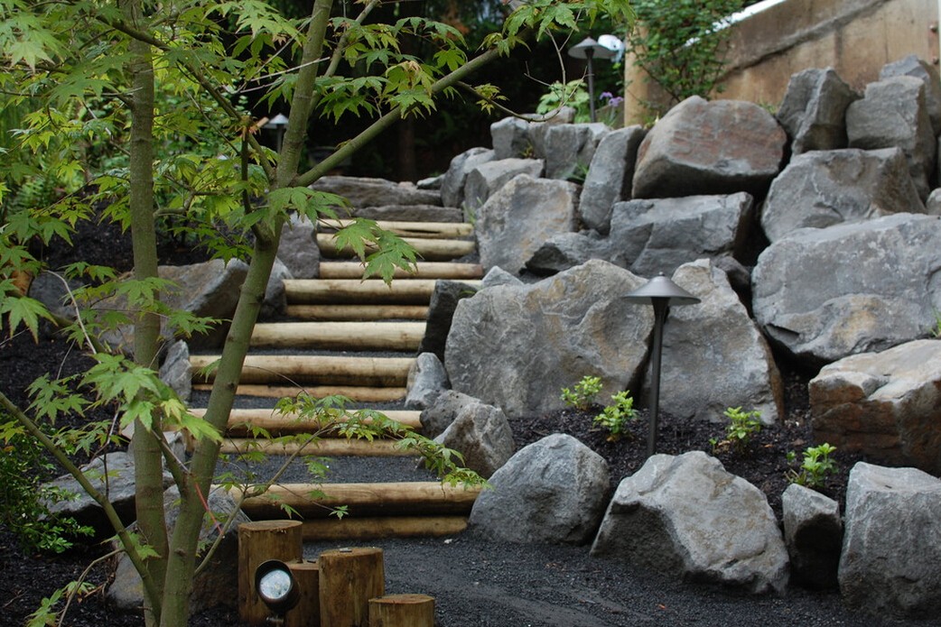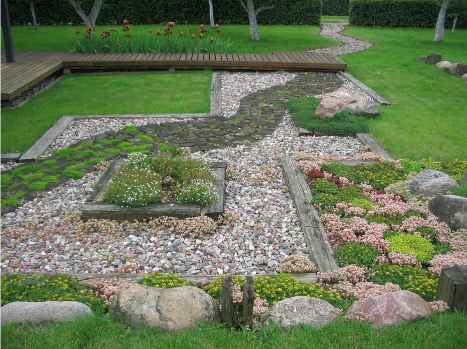 2.木材路径:又爱又胖的木块在碎石面上给人打造舒适的路径。