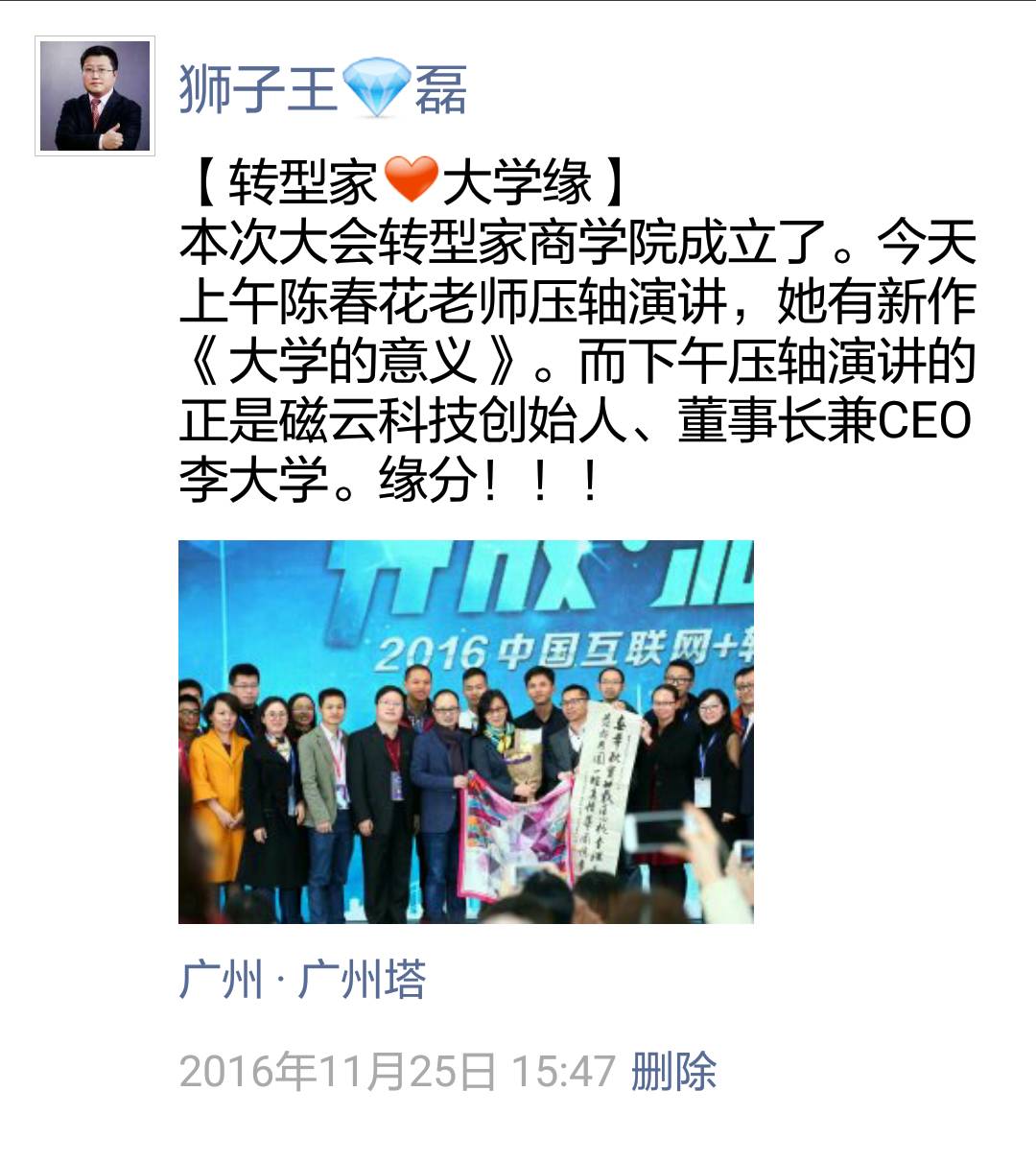 很多人不知道的是:春花老师是我齐齐哈尔的“老乡”,大学老师是我磁云科技的“老板”。