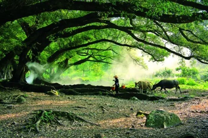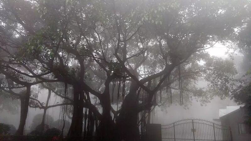 ▲云雾缭绕的山庄旅舍大榕树林,有妖精在歌唱么?