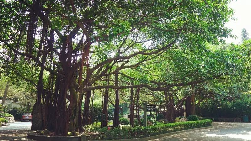 ▲广州白云山上山庄旅舍门口的大榕树林。