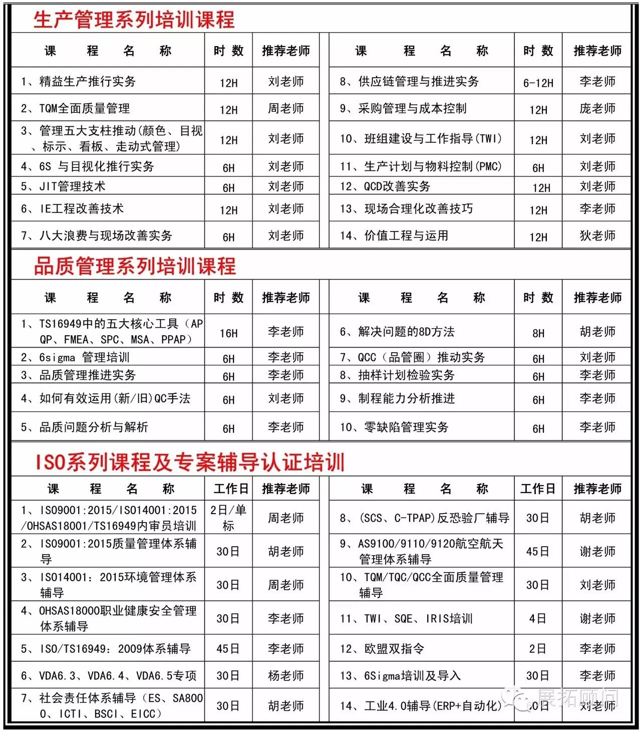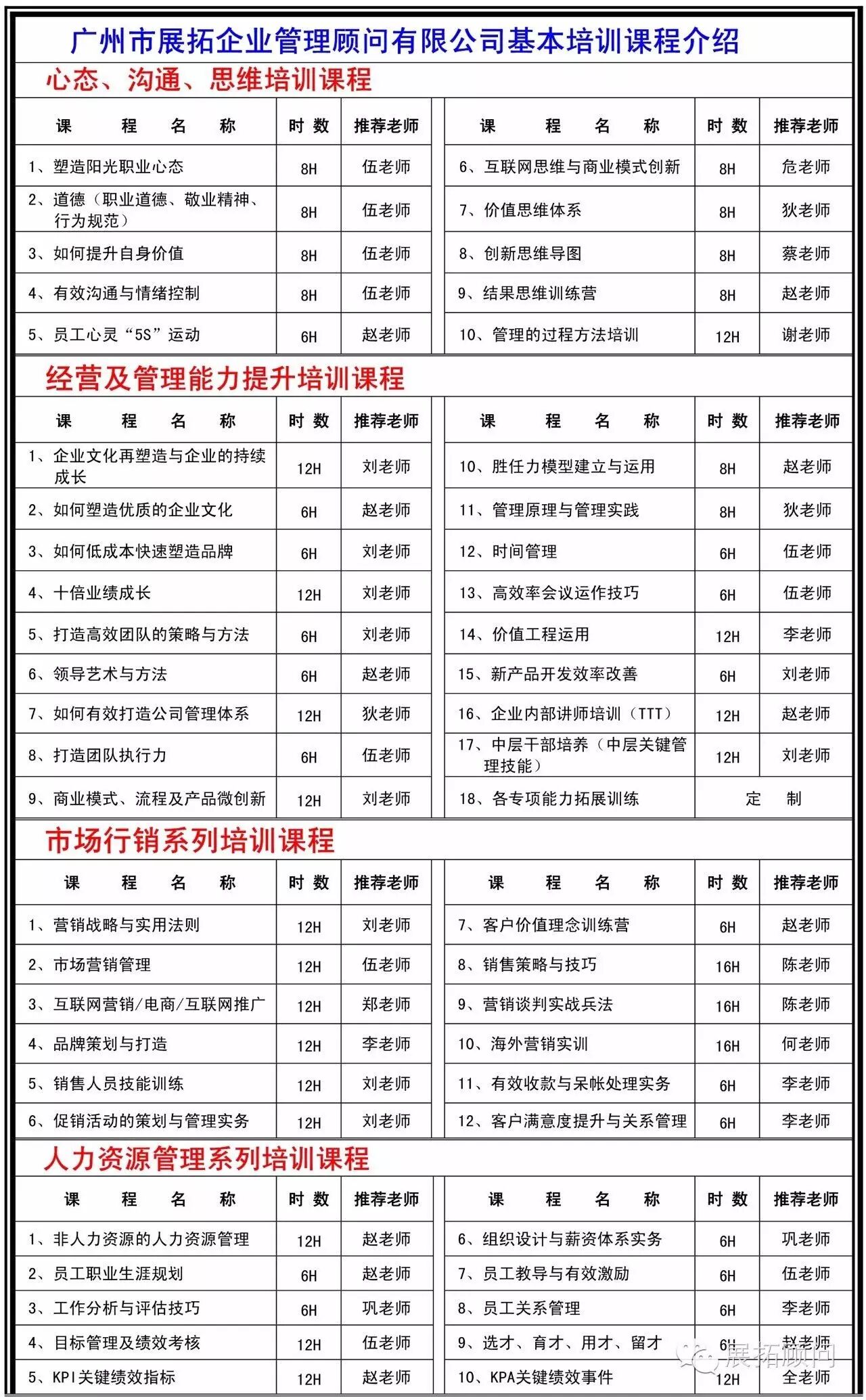 2、广州市展拓企业管理顾问有限公司2016年提供的培训课程: