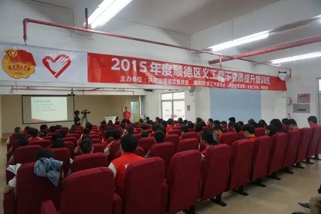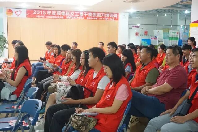 2015年10月-11月,邀请香港义务工作发展局义工培训发展经理刘定忠先生为顺德区的义工开展2015年度顺德区义工骨干素质提升培训班,培训班主要由一线义工专项培训和义工领袖专项培训组成,一共开展了两期的培训,受益人次达 400多人次。