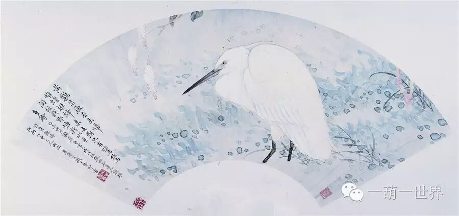 居巢《鹭鸶图》扇面,纸本设色,广东省博物馆藏