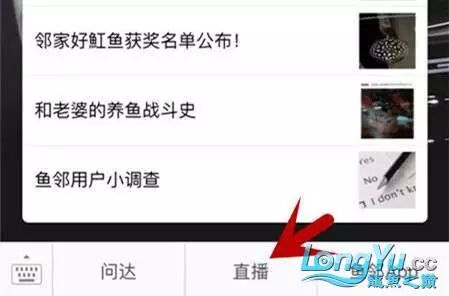 方法二:鱼邻微信公众号直播(关注鱼邻公众号—点击菜单【直播】按钮)如下图