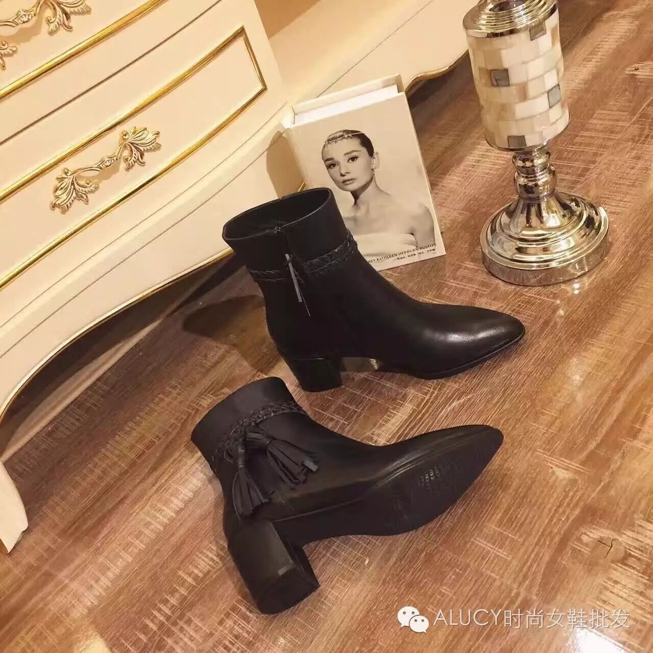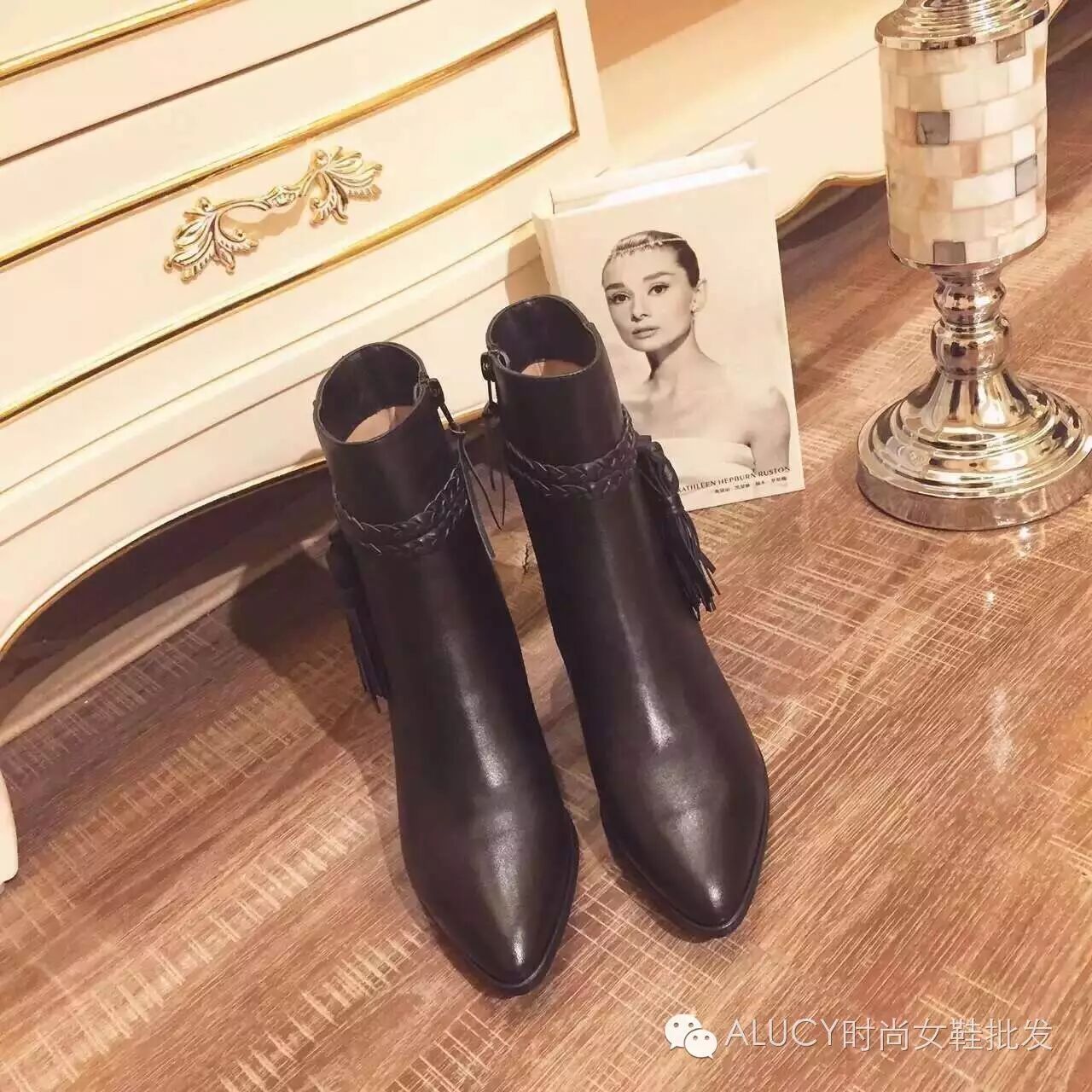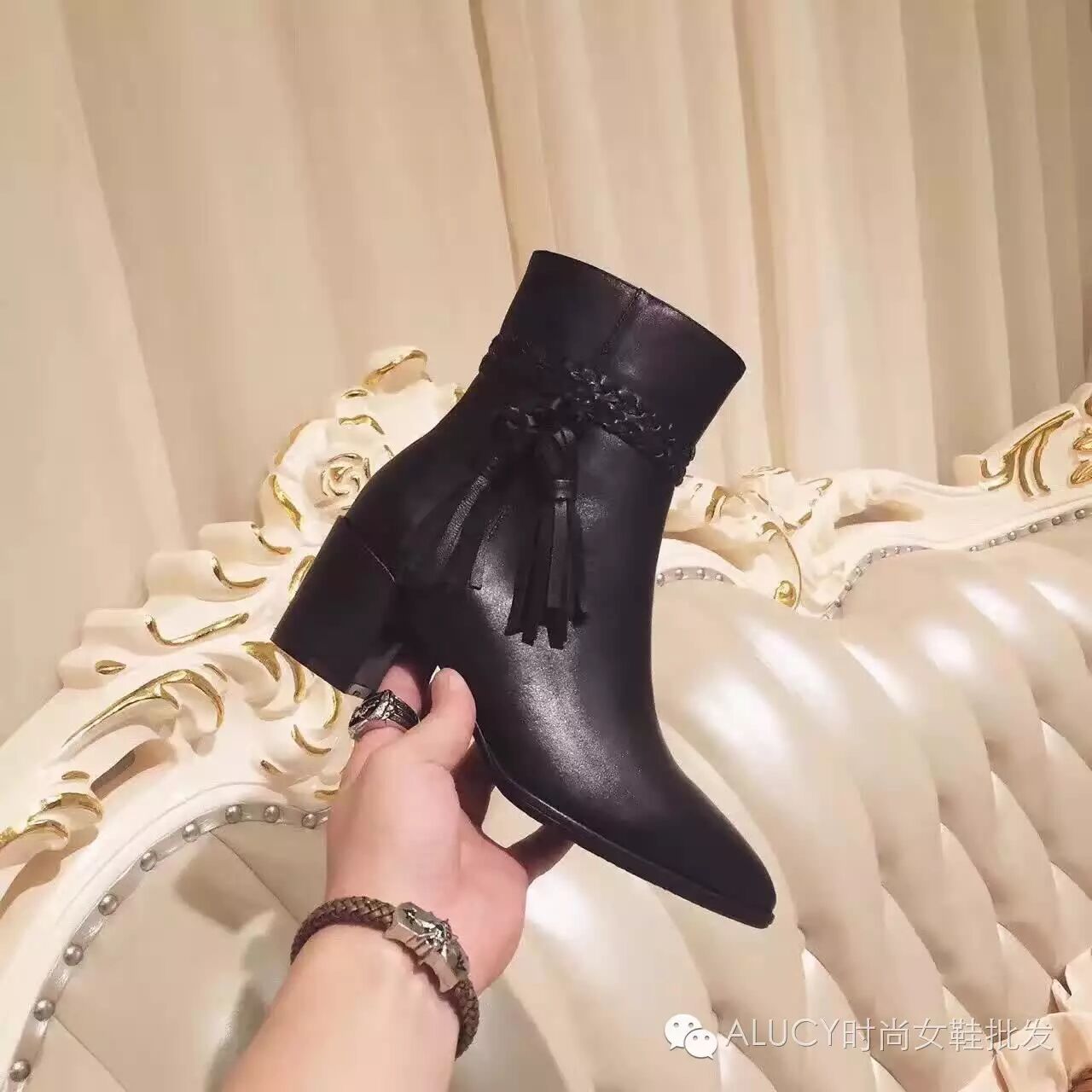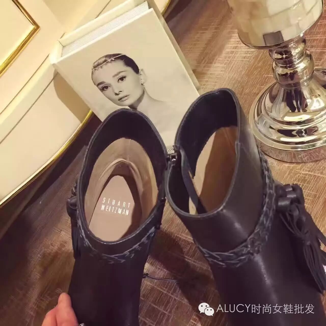 Stuart Weitzman进口小羊京短靴女士流苏编织带女靴牛皮内里,流苏全皮订制原版耐磨橡胶底片,粗跟5.5