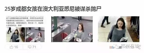 25岁成都女孩在澳大利亚悉尼被谋杀抛尸